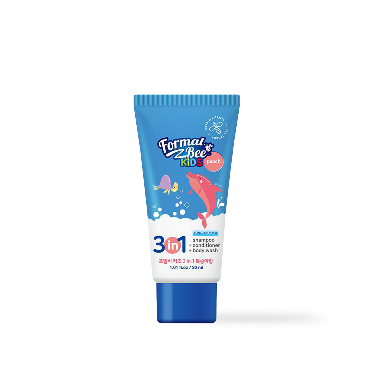 Details Formal Bee Kids 3in1 Peach, a head-to-toe all-in-one cleanser for kid, including shampoo, conditioner and body wash. Contains Propolis that delivers moisture and protects weak...